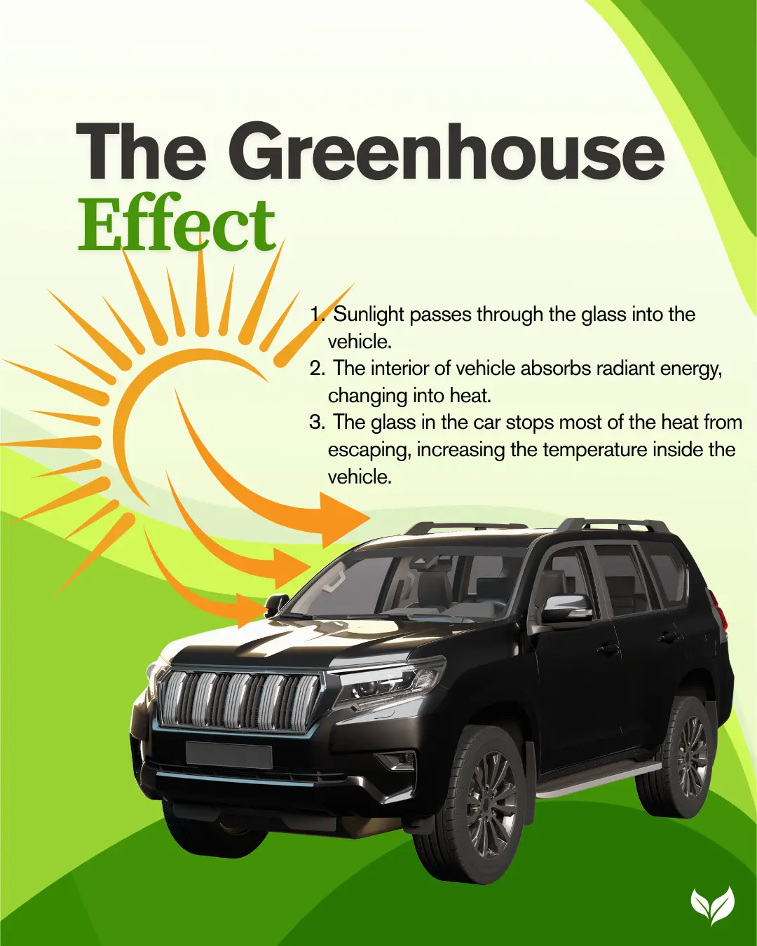 Even when the outside temperature is only 80°F, the inside of a parked vehicle can become dangerously hot in minutes. Within 10 minutes, the temperature inside can rise to 99°F, and after 30 minutes, it can soar past 114°F. This rapid increase happens due to the greenhouse effect, where sunlight enters through the windows, heats up the interior surfaces, and traps the heat inside.